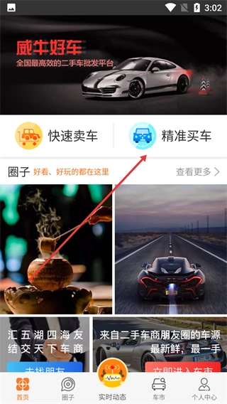 1、点击【精准买车】选项,即可进入收车神器界面。