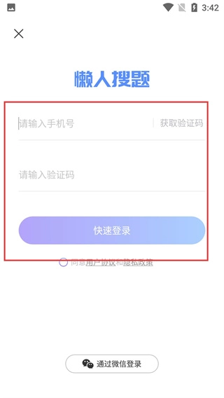 4、进入登录页面后,可通过输入【手机号】并获取验证码,点击【快速登录】,也可选择【通过微信登录】完成账号验证。