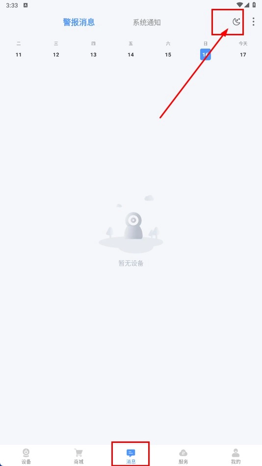 3、点击底部【消息-功能按钮】,进入消息页面,点击右上角图标可设置消息勿扰。