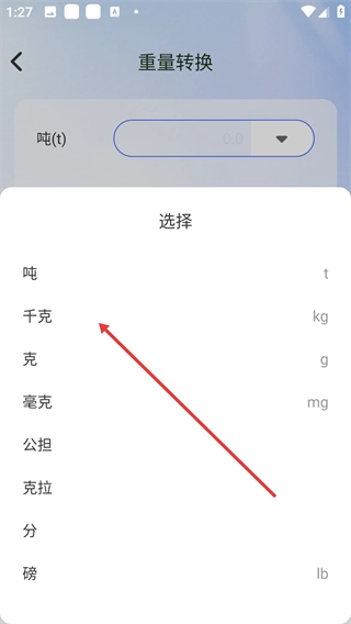 3、在重量转换界面选择目标单位,如【千克】。