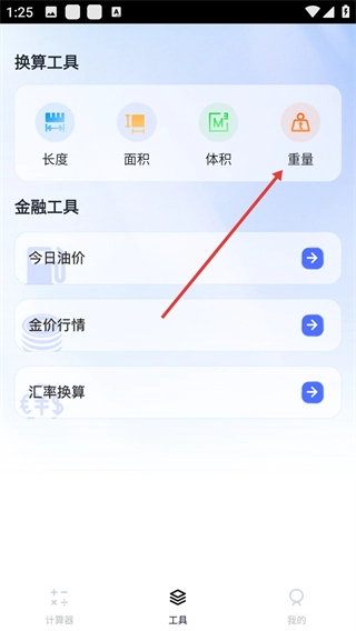2、在工具界面点击【重量】换算工具。