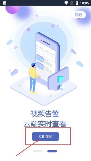 2、在引导页面中,点击【立即体验】按钮,可进入应用的登录界面,也可点击右上角【跳过】直接进入。