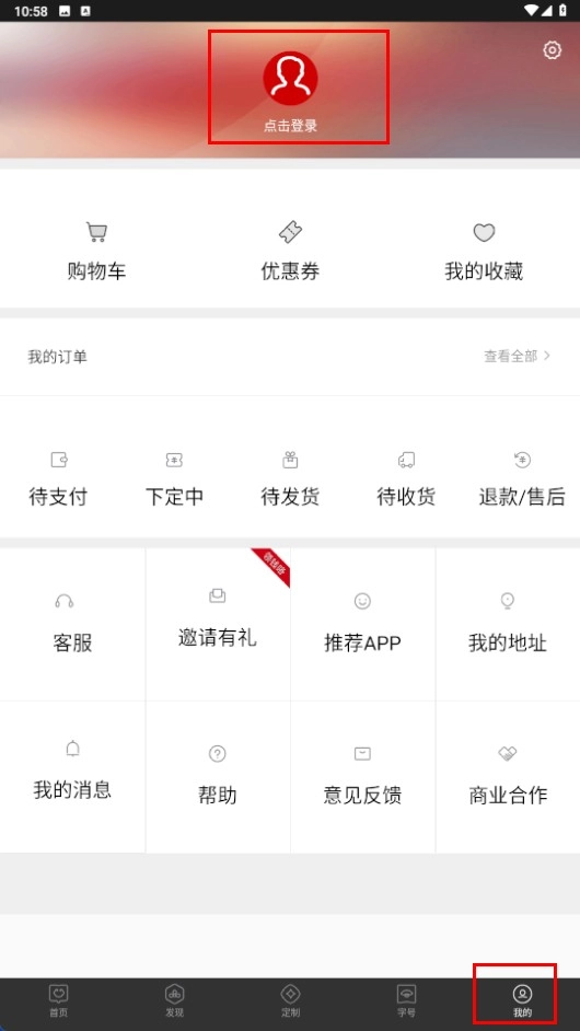 2、点击底部【我的-功能按钮】,再点击【点击登录-功能按钮】,进入登录页面。
