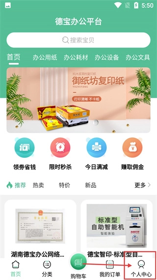 3、在首页,点击右下角【个人中心】按钮,进入个人中心页面。