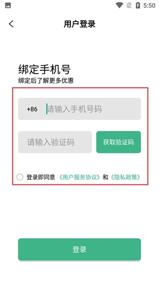 4、在用户登录界面,输入【手机号码】并点击【获取验证码】,点击【登录】按钮完成注册登录。