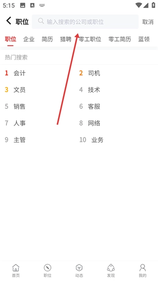 2、在职位搜索界面输入目标职位名称,如“老师”。