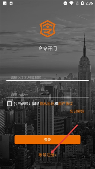 3、在登录界面,点击【账号注册】,进入注册流程。