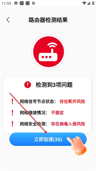 3、在路由器检测结果界面点击【立即加速(3S)】按钮,优化网络。
