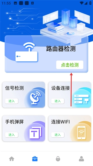 2、在网络工具界面点击【路由器检测-点击检测】按钮,进行路由器检测。