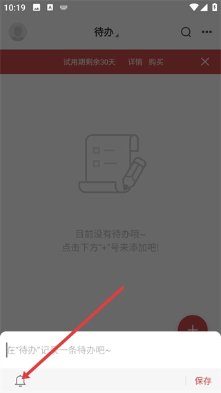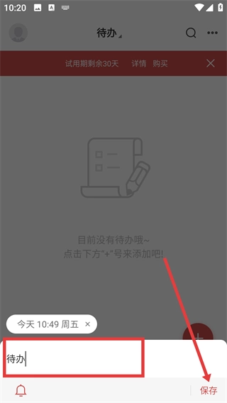 4、设置好提醒时间后,在输入框中输入待办内容,点击【保存】按钮,即可完成待办事项的创建。