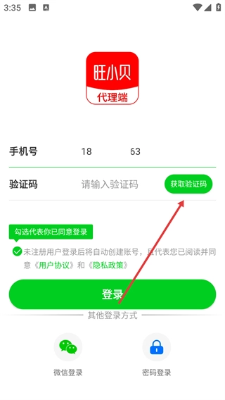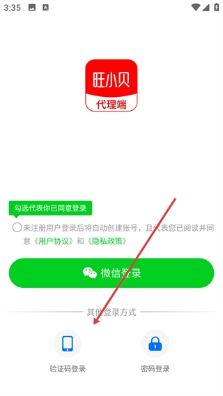 1、点击【验证码登录】选项,即可进入验证码登录界面。