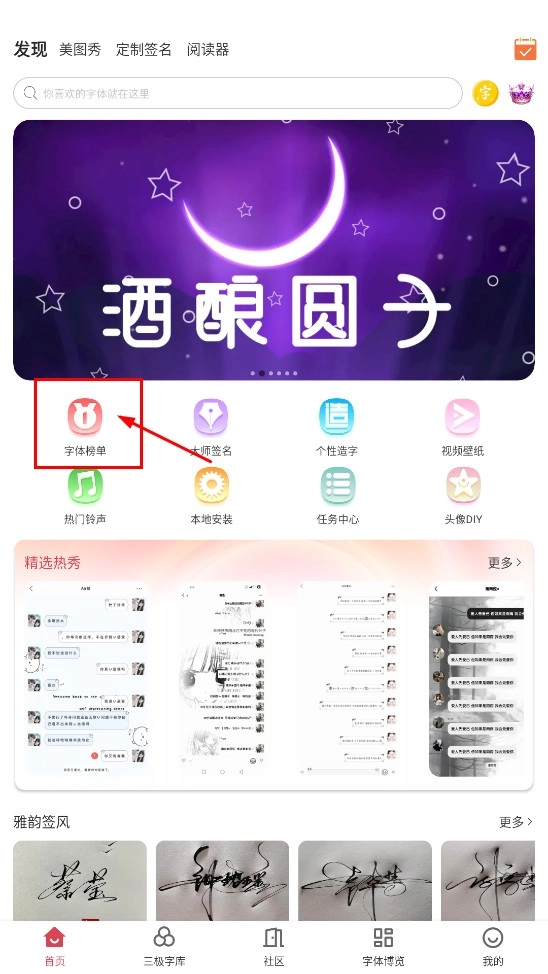 1、点击【字体榜单】功能入口,即可进入字体榜单页面。