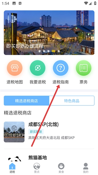 2、在主界面点击【退税指南】选项,进入退税指南页面。