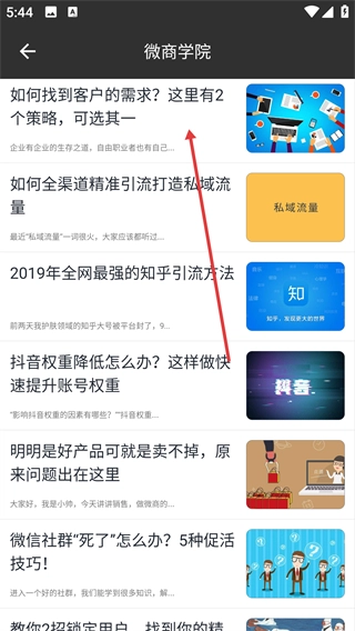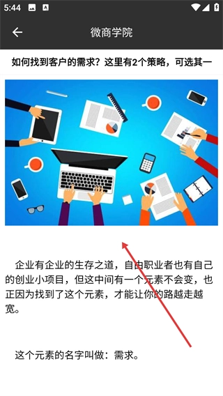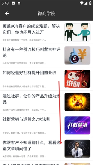 4、在文章详情页阅读内容,学习微商相关知识与技巧。
