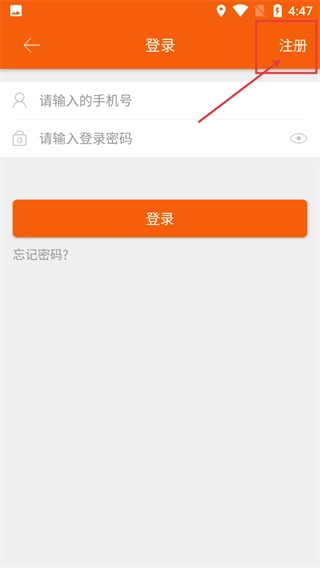 3、在登录界面,点击右上角【注册】按钮,进入注册入口。
