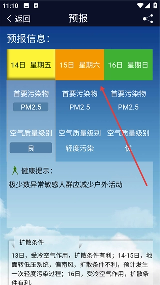 3、在预报页面选择目标日期,如“15日 星期六”。